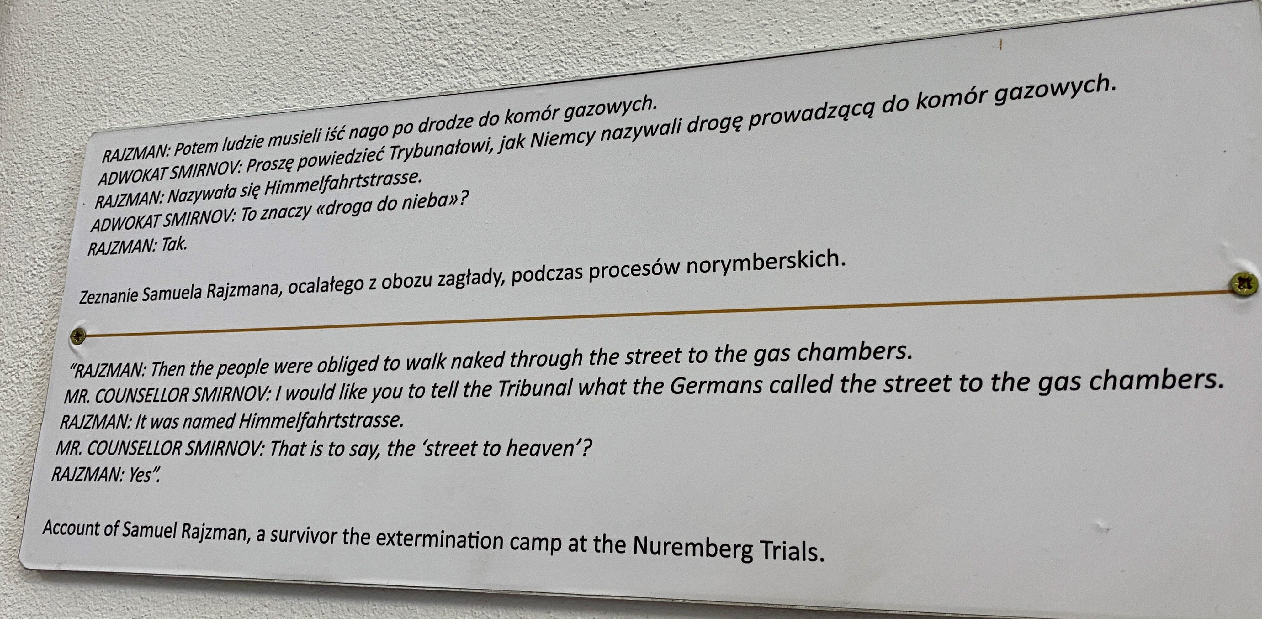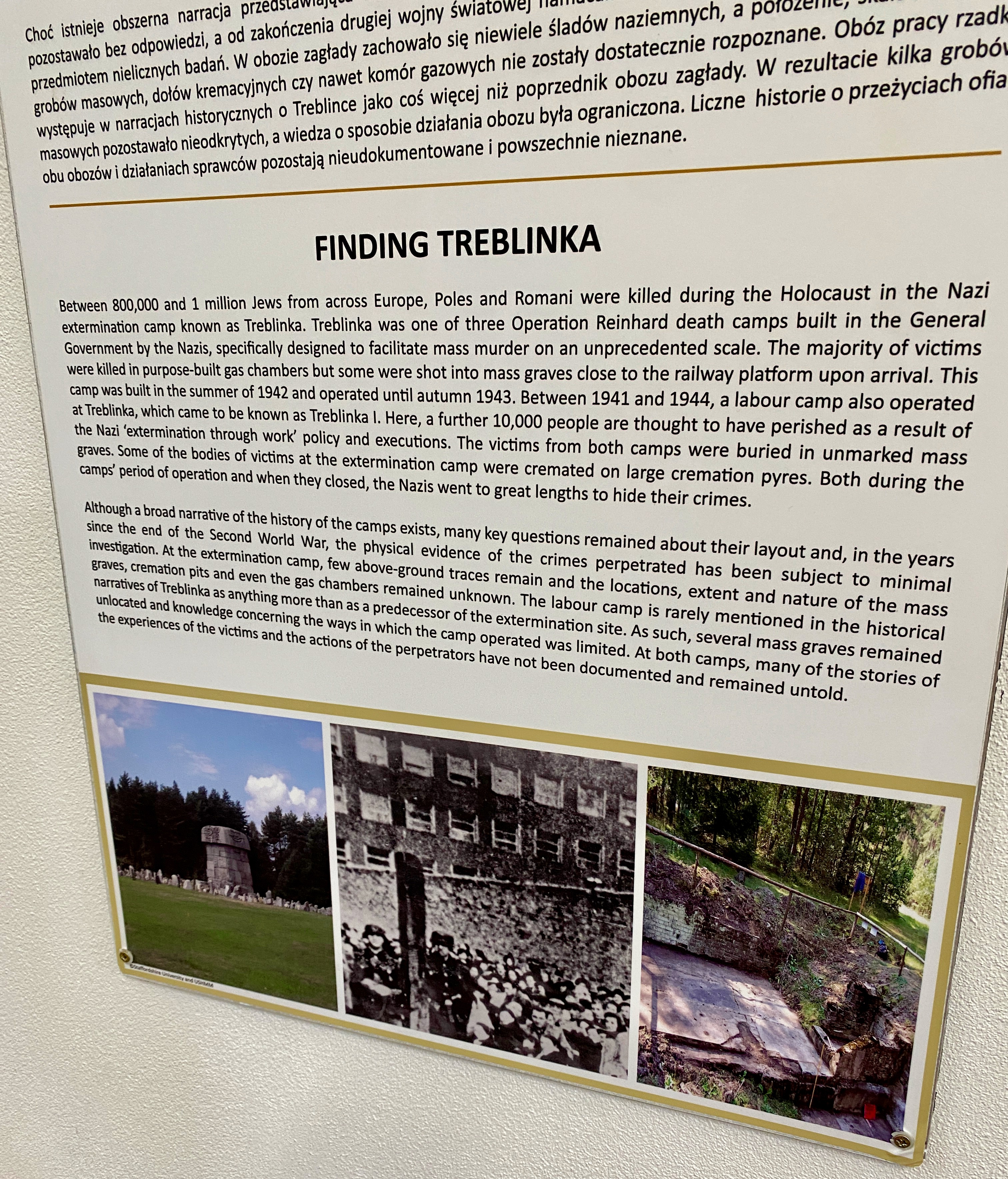 Compared to Auschwitz, Treblinka receives far fewer visitors, even though comparable numbers were killed here. Our tour guide, Pawel, who grew up in the same nearby town some of our relatives did (Kosów Lacki), was extremely knowledgeable, somber, and sensitive to our visit, as we explained that Abe’s family and relatives were murdered at Treblinka. Strangely, in the small museum we noticed testimony from a survivor named Samuel Rajzman (pronounced “Raizman” as in my family’s name). Though we know the Raizmans on my father’s side came to the US from Russia in an earlier wave of migration, we wished Dad could have been here with us, as he would have been so curious about the name’s similarity.