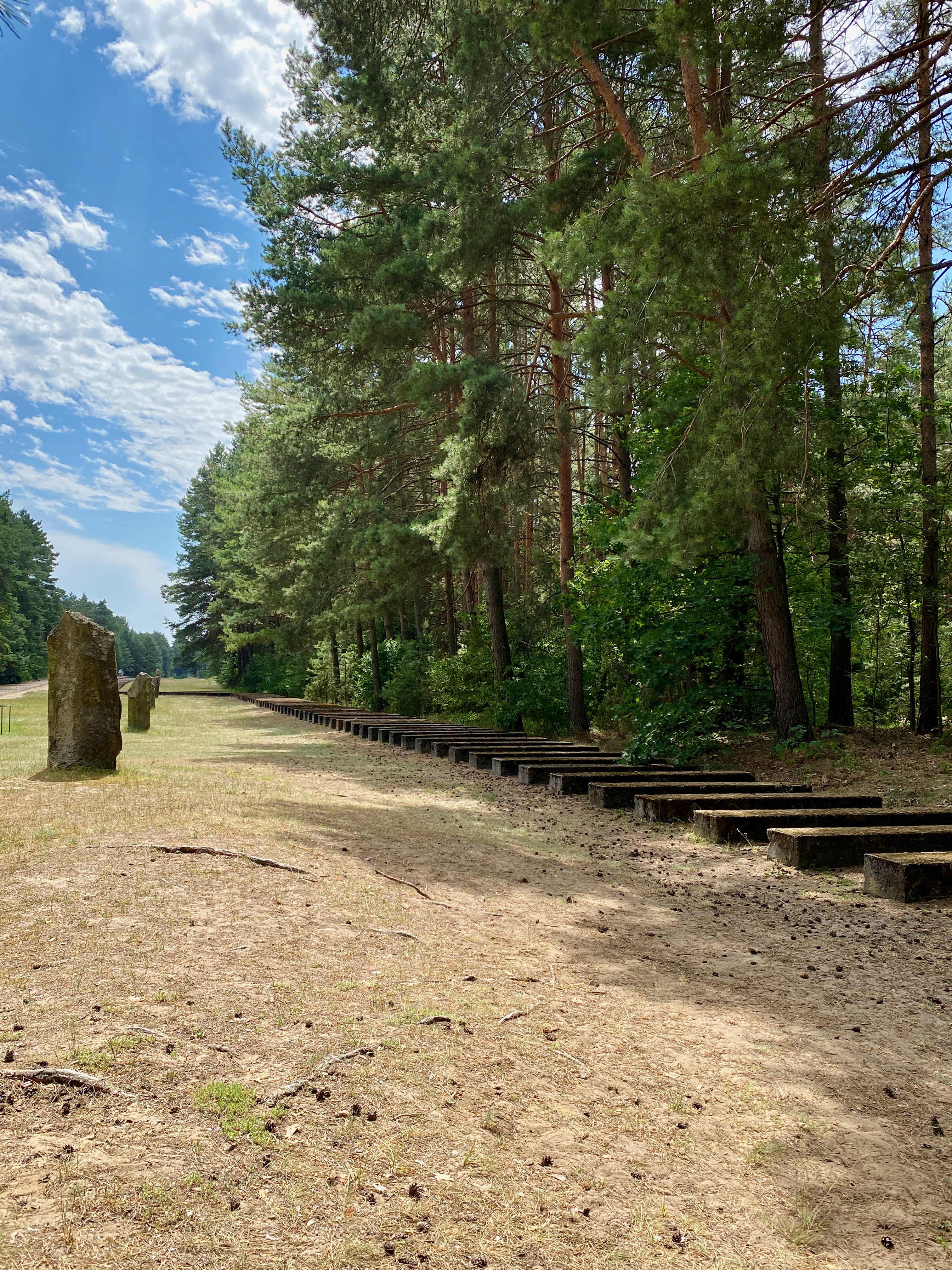 Treblinka, one of three death camps along with Belzec and Sobibor (which were all commenced under Operation Reinhard, the German’s secret plan to exterminate Jews in occupied Poland), had only one purpose: to kill as many Jews as possible in the most efficient way possible. It was set up in spring 1942 next to a preexisting labor camp under the same name, and over 16 months it murdered 900,000 people (only 120 survived, after an escape attempt). Once it accomplished its mission, the camp was liquidated and destroyed in fall 1943, which explains why so little remains as compared with camps which were liberated at the end of the war; even the train tracks were destroyed, so there are large boulders as markers where they used to be leading into the camp.