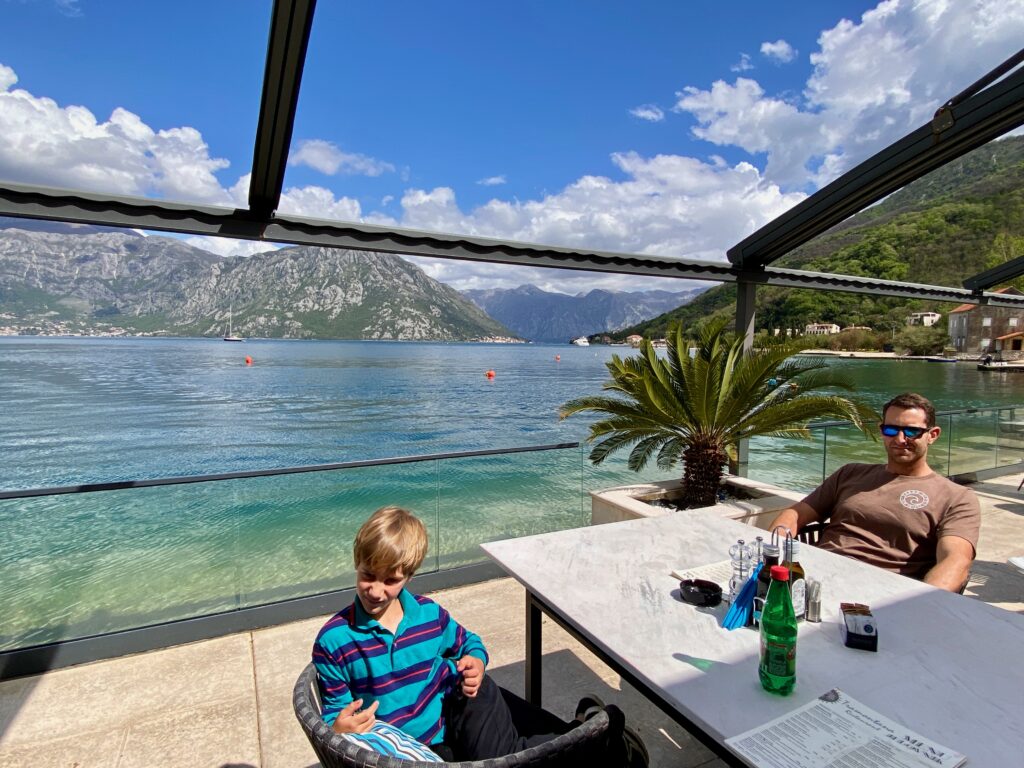 As you make your way along the coast, you’ll likely be enticed to pull over at various overlooks for photos. The fjord-like valleys framing the water are stunning and will remind some travelers of Bergen, Norway. We stopped for lunch at Tramontana Beach Bar in Morinj, which offers seaside views and an adjacent playground while you enjoy local cuisine (with a lot of Italian influences). Depending on the time of year and how crowded it might be, you can also stop in Perast, a historical town known for proximity to the islets of St. George and Our Lady of the Rocks in the middle of the bay.