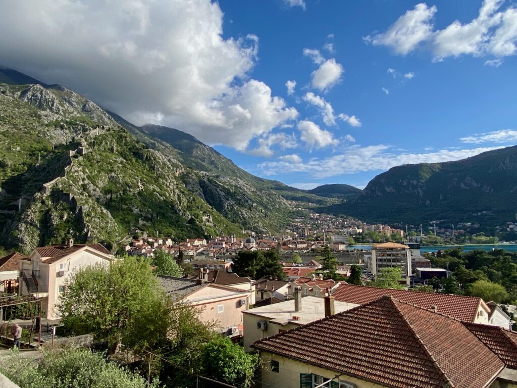 Although many people visit the Bay of Kotor as a day trip from Dubrovnik, or just for one night, we had heard such good things about the area that we decided to spend four nights. We stayed in Dobrota, just slightly north of Kotor’s Old Town but still within walking distance of the harbor and useful amenities (supermarket, restaurants, etc.). We found better lodging options on Booking.com and were quite happy with this two-bedroom, top floor apartment with balcony which provided incredible views of Kotor.