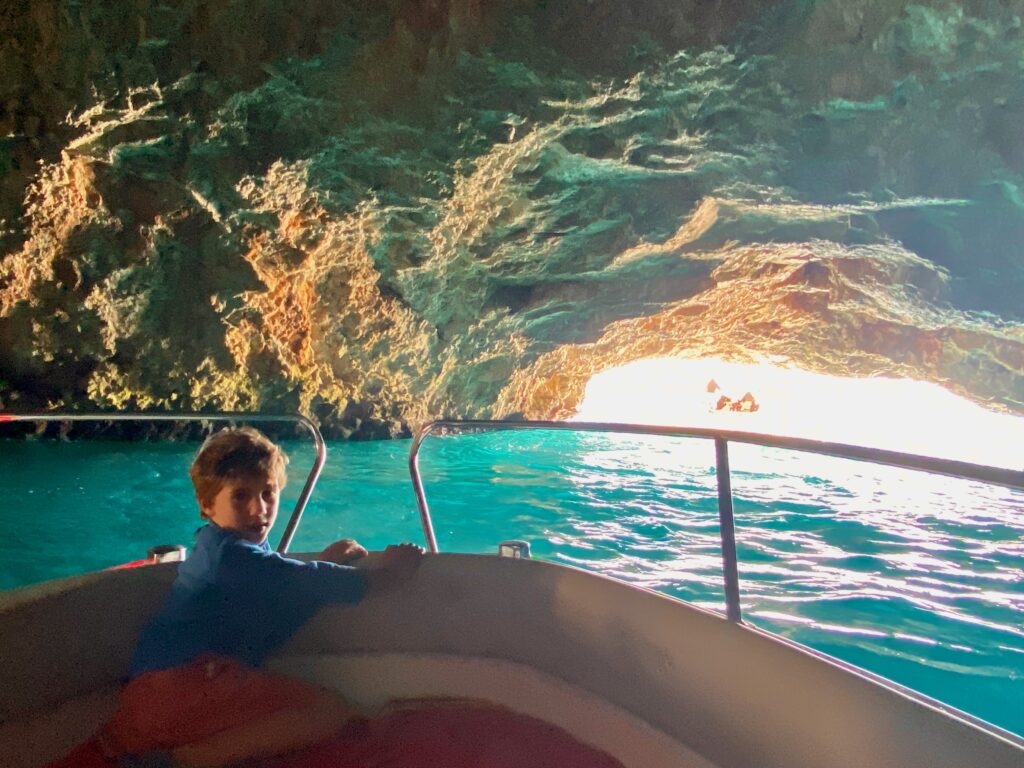 The Kotor highlight was a 3-hour boat tour of the bay, visiting a Yugoslavia-era submarine tunnel, two islets, and the Blue Cave along the Adriatic. But Jacob only cared about going as fast as possible in the speedboat, and the driver was happy to oblige!