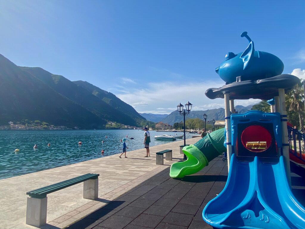 For lunches in Kotor, we found a friendly, Balkan-inspired sandwich and salad spot, Sandwich XL, with delicious local ingredients. For dinner, there are a number of harbor-side restaurants, including a few next to a playground right on the water (best not to eat in the Old Town, as most of those restaurants are overpriced and touristy). The pedestrian-only promenade is nice to stroll along as the sun goes down over the mountains.