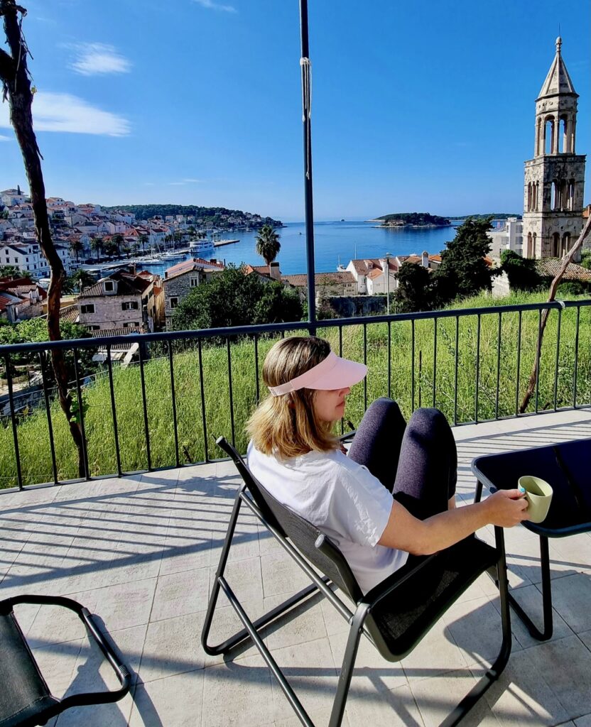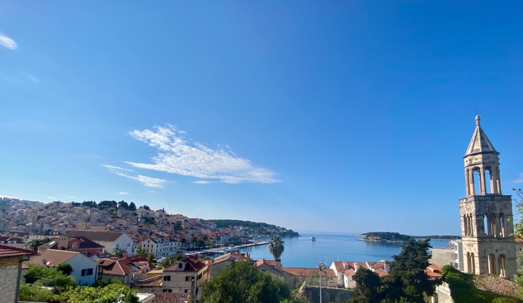 We stayed in a Booking.com house rental a short walk uphill from where the Dubrovnik-Hvar ferry stops. The views were incredible and we enjoyed early mornings and evenings relaxing on the terrace and side patio. A 20-minute hike up the hill brought us to Hvar Fortress overlooking the bay, which is worth it for the view but not to visit inside.
