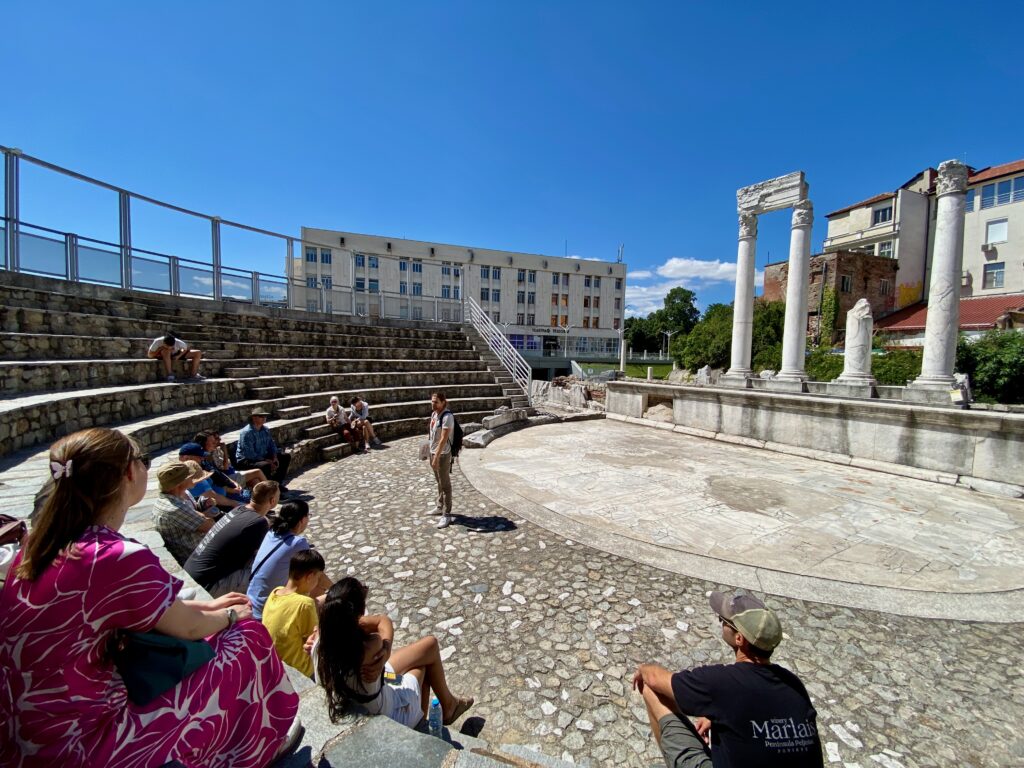 We spent several days in Plovdiv, Bulgariaβs second largest city, Europe’s oldest continually occupied city, and my favorite city in this summer’s travels. The city appeared to prioritize and execute a clear vision of preserving and showcasing the ancient Roman ruins while integrating sites into modern city life and demands: for example, a below current street-level Roman stadium with 30,000 seats, 260 meters long and spanning the length of an entire pedestrian thoroughfare, now ends partially excavated in an open-air, charming, outdoor concert space. How refreshing to see a city making a concerted effort to pedestrianize streets and facilitate safety and comfort in the center.